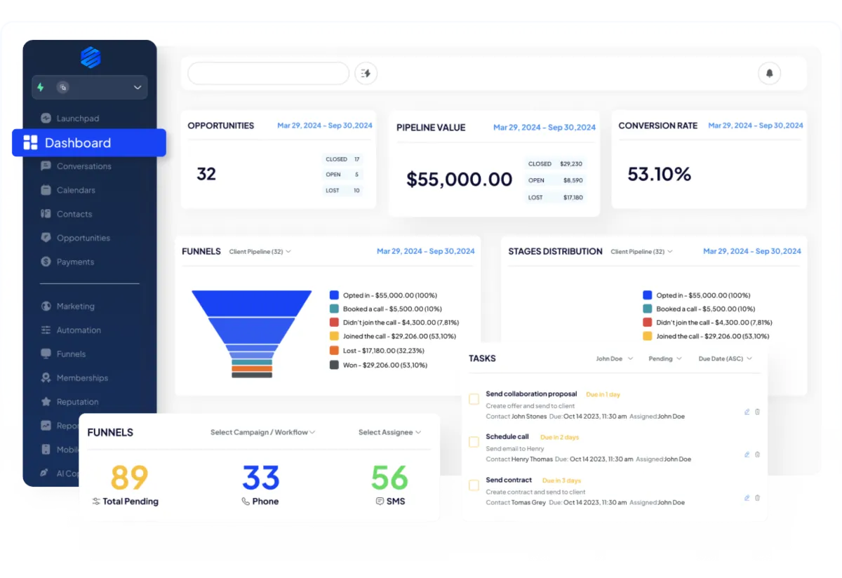 نها تحل محل أدوات متعددة! بدلاً من الدفع مقابل نظام CRM منفصل، وخدمة تسويق عبر البريد الإلكتر الإلكتروني (مثل Mailchimp)، وأداة بناء مسارات بيع (مثل ClickFunnels)، وأداة جدولة (مثل Calendly)، ستحصل على كل ذلك وأكثر في تسجيل دخول واحد بسيط وبسعر مناسب.
